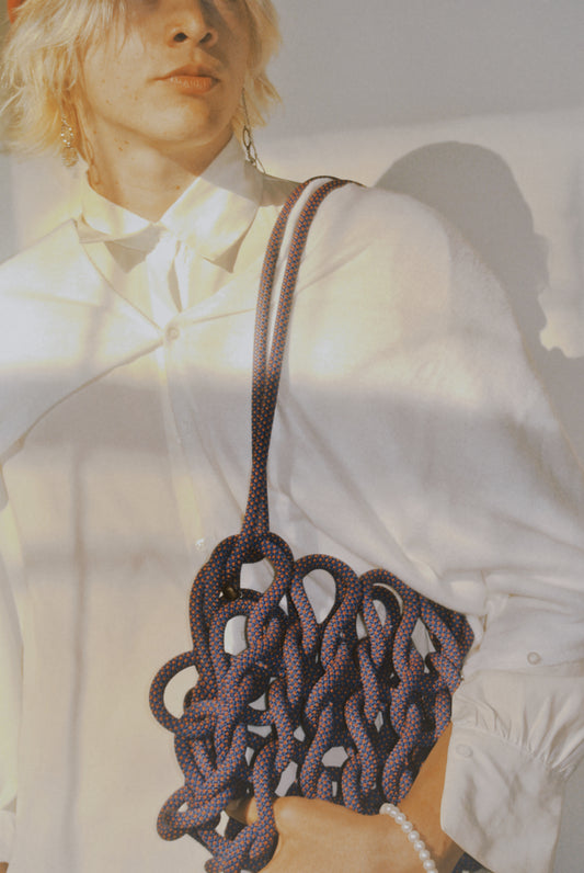 Slow fashion genderless knitwear based in Utah. From yarn, up-cycled rope, and sterling silver chain. Focusing on clothes as the most intimate form of art, an extension of the self.