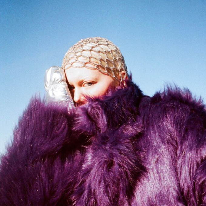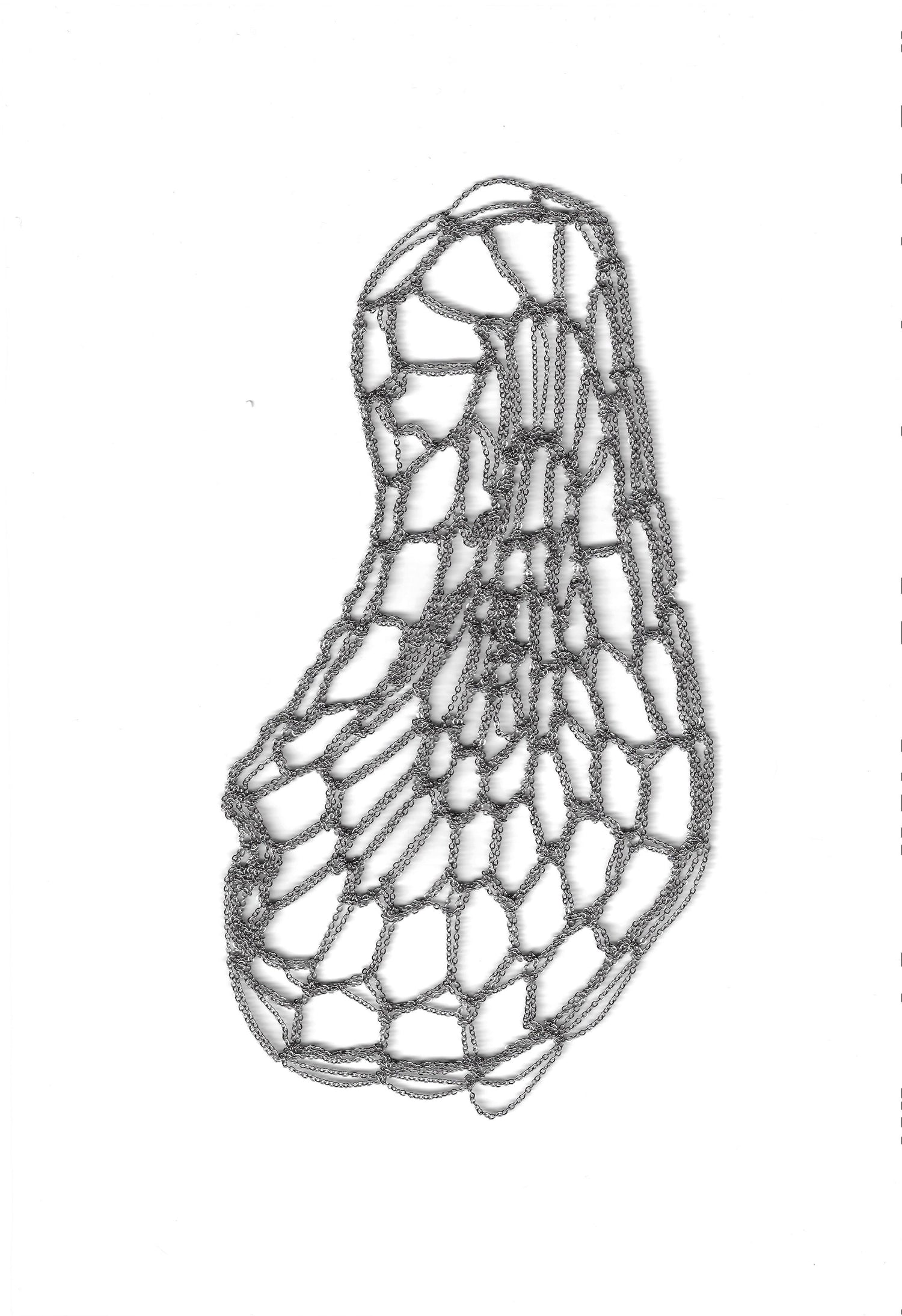 Cap hand crocheted from silver stainless steel chain. One size, drapes over head and ties under chin.